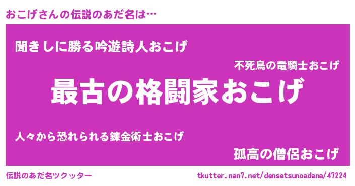 | ヒーロー風カッコイイあだ名 | 『最強戦士オコゲ』『ウルトラおこげマン』 |