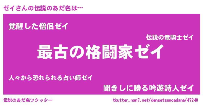 | 男性向けラノベタイトル風あだ名 | 『はたらくゼイさま!』『ゼイスレイヤー』 |