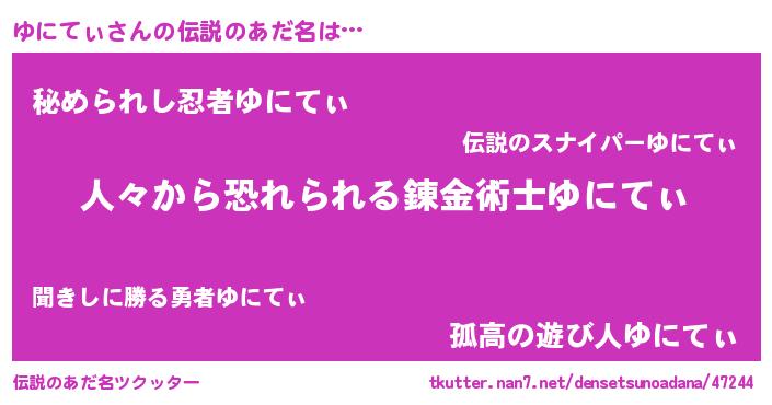 | ヒーロー風カッコイイあだ名 | 『友情の使者ゆにてぃ』『仮面ユニダー』 |
