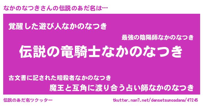 | ヒーロー風カッコイイあだ名 | 『スーパーナカノナツキ』『天弓騎士ナカ』 |