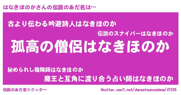 | ヒーロー風カッコイイあだ名 | 『暗黒騎士ハナ』『ネオハナキホノカ』 |