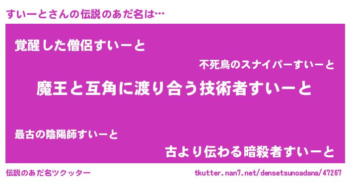| ヘコむあだ名 | 『すい太郎』『すいーと(爆)』 |