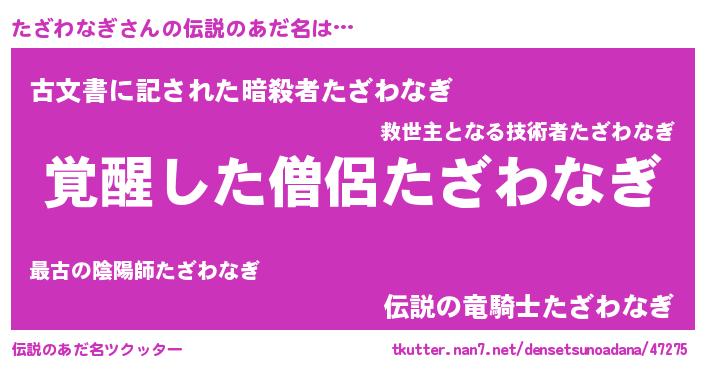 | 男性向けラノベタイトル風あだ名 | 『たざわなぎに滅ぼされるだけの簡単なお仕事です』 |