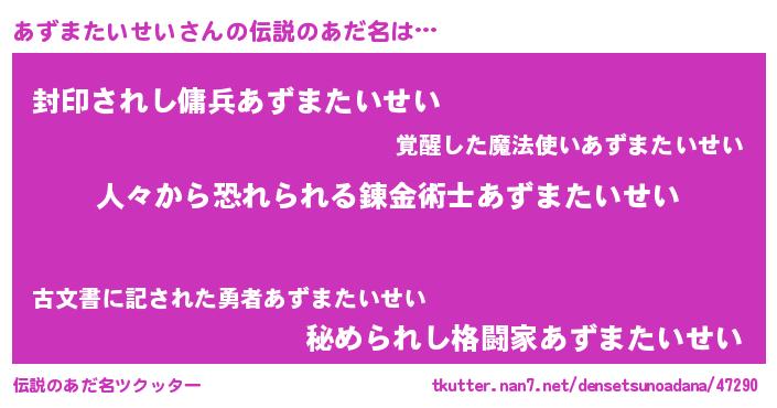 | 意味不明あだ名 | 『眠気覚ましガムあずまたいせい味』 |