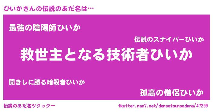 | ヒーロー風カッコイイあだ名 | 『天空の使者ひいか』『銀牙騎士ヒイ』 |
