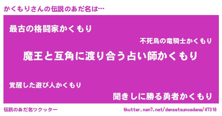 | 意味不明あだ名 | 『住所不定無職かくもり(59歳)』 |
