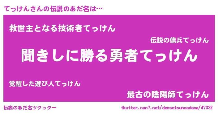 | 意味不明あだ名 | 『永久保存てっけん』『自称てっけん』 |