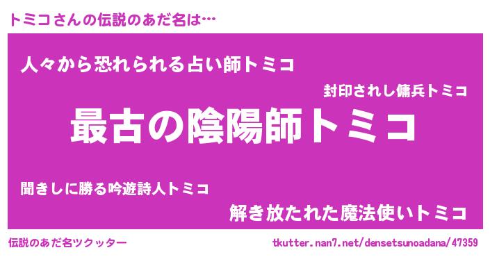| 意味不明あだ名 | 『トミコフォーエバー』『自称トミコ』 |