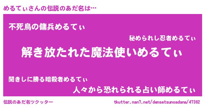 | ヒーロー風カッコイイあだ名 | 『銀牙騎士メル』『最強戦士メルティ』 |