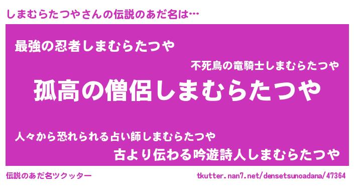 | 意味不明あだ名 | 『とにかく怪しいしまむらたつや』 |
