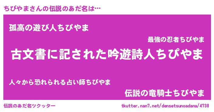 | ヒーロー風カッコイイあだ名 | 『ネオチピヤマ』『天弓騎士チピ』 |