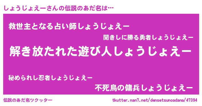 | 意味不明あだ名 | 『自称しょうじょえー』 |