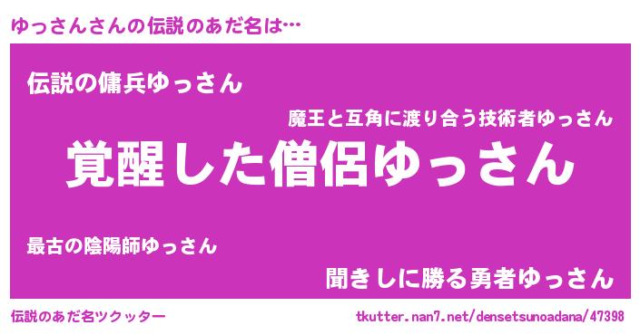 | ヒーロー風カッコイイあだ名 | 『究極戦士ユッサン』『暗黒騎士ユッ』 |