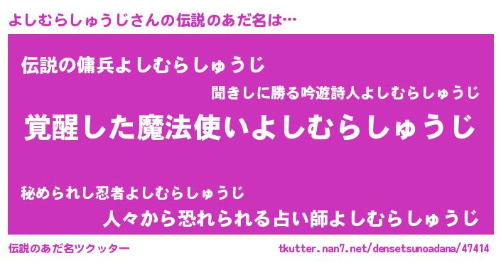 | 意味不明あだ名 | 『自称よしむらしゅうじ』 |