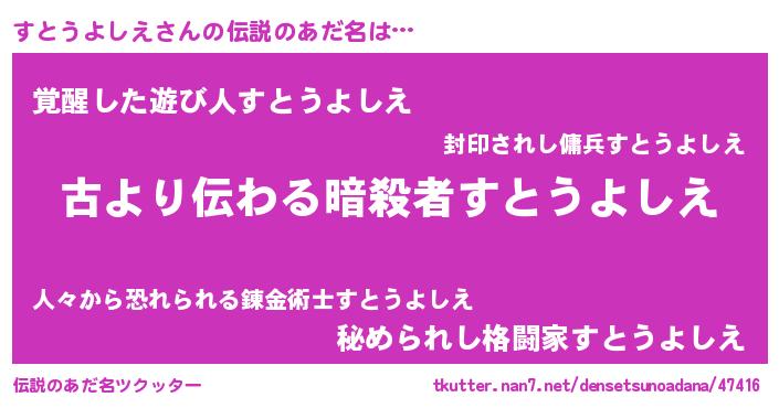 | 意味不明あだ名 | 『永久保存すとうよしえ』 |
