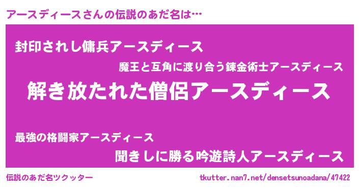 | 女子向けラノベタイトル風あだ名 | 『男装アースディースの憂鬱な任務』 |