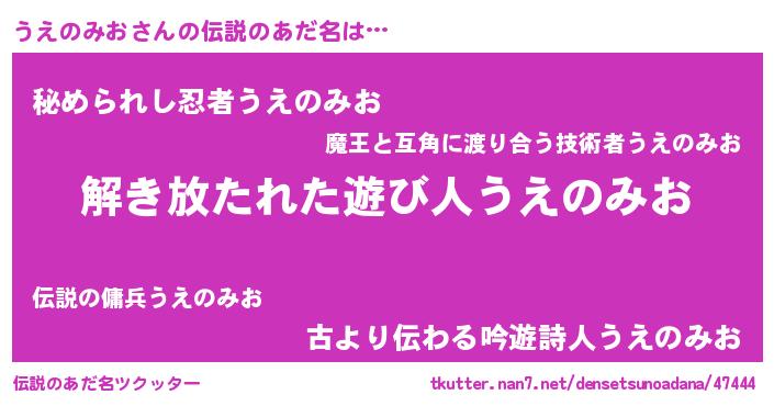 | 意味不明あだ名 | 『とにかく怪しいうえのみお』 |