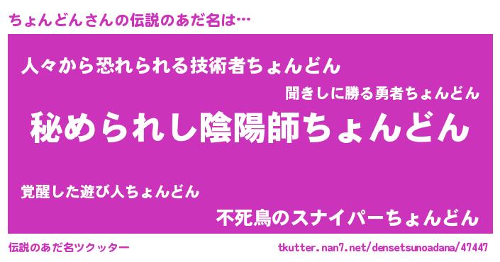 | 意味不明あだ名 | 『ちょんどんフォーエバー』 |