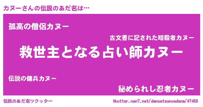 | 意味不明あだ名 | 『住所不定無職カヌー(40歳)』『自称カヌー』 |