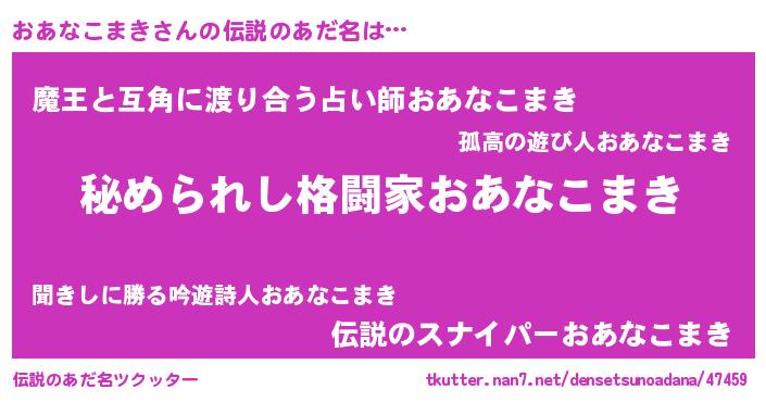 | 意味不明あだ名 | 『おあなこまきフォーエバー』 |