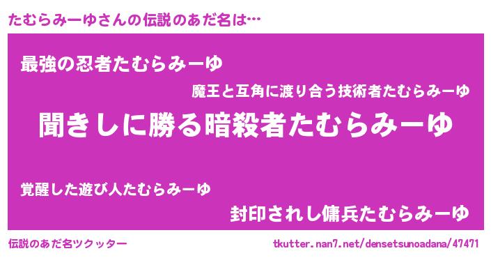 | 意味不明あだ名 | 『自称たむらみーゆ』 |