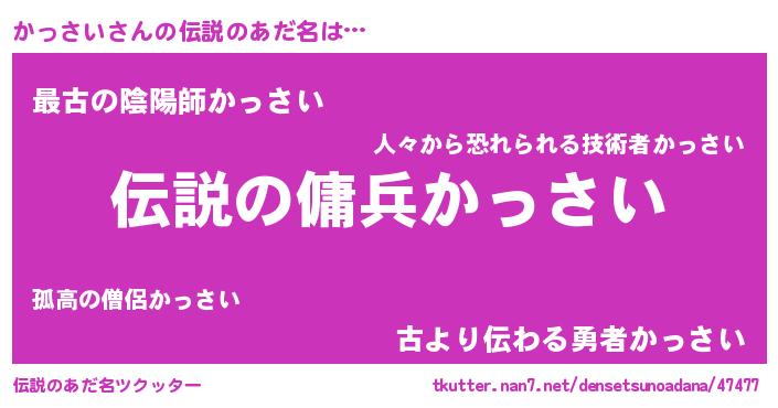 | ヒーロー風カッコイイあだ名 | 『スーパーカッサイ』『最強戦士カッサイ』 |