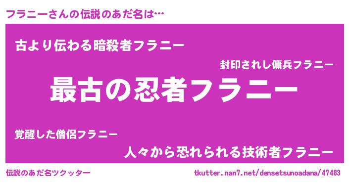 | 恥ずかしいあだ名 | 『フラニーデラックス』『フラっちょ』 |