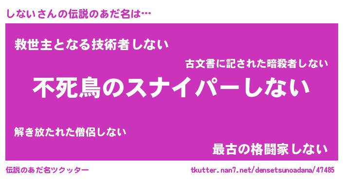 | 胡散臭い通販商品みたいなあだ名 | 『モテモテ間違いなし霊験あらたかなお札…その名も「しない」』 |