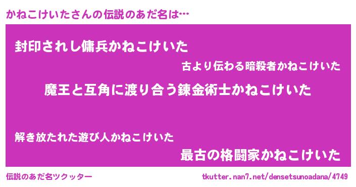 | ヒーロー風カッコイイあだ名 | 『愛の使者かねこけいた』『仮面カネダー』 |