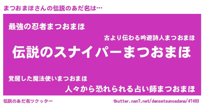 | 胡散臭い通販商品みたいなあだ名 | 『必ず成功する霊験あらたかなお札…その名も「まつおまほ」』 |