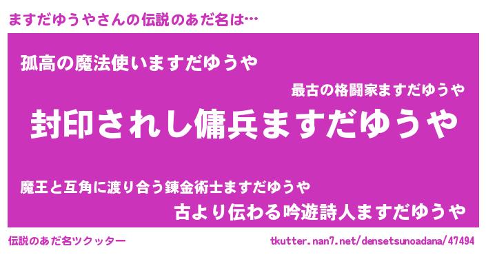 | 男性向けラノベタイトル風あだ名 | 『この素晴らしい世界にますだゆうやを!』 |
