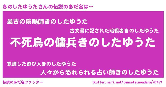 | 意味不明あだ名 | 『住所不定無職きのしたゆうた(14歳)』 |