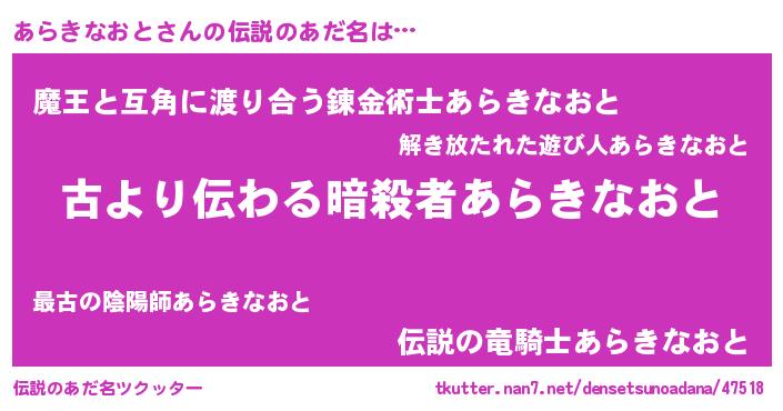 | 意味不明あだ名 | 『永久保存あらきなおと』 |