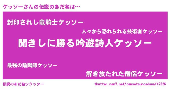 | ヘコむあだ名 | 『ケッソー(笑)』『ケッにー』 |