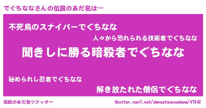 | ヒーロー風カッコイイあだ名 | 『仮面デグダー』『ネオデグチナナ』 |