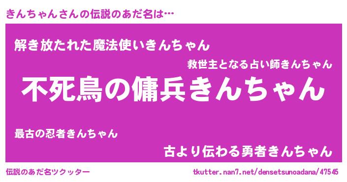 | ヒーロー風カッコイイあだ名 | 『スーパーキンチャン』『魔戒騎士キン』 |