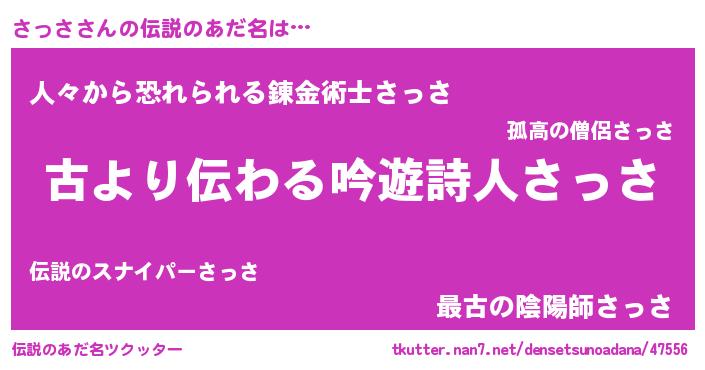 | ヒーロー風カッコイイあだ名 | 『ネオサッサ』『正義の使者さっさ』 |