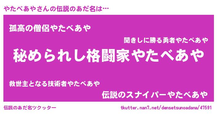 | ヒーロー風カッコイイあだ名 | 『ウルトラやたべあやマン』 |