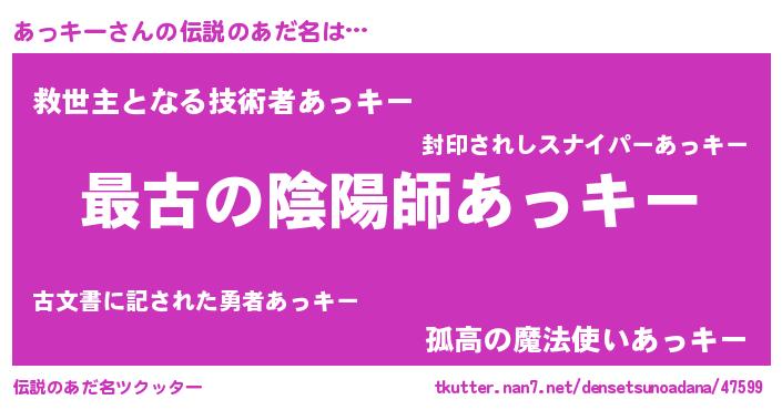| ヒーロー風カッコイイあだ名 | 『仮面アッダー』『ウルトラあっキーマン』 |