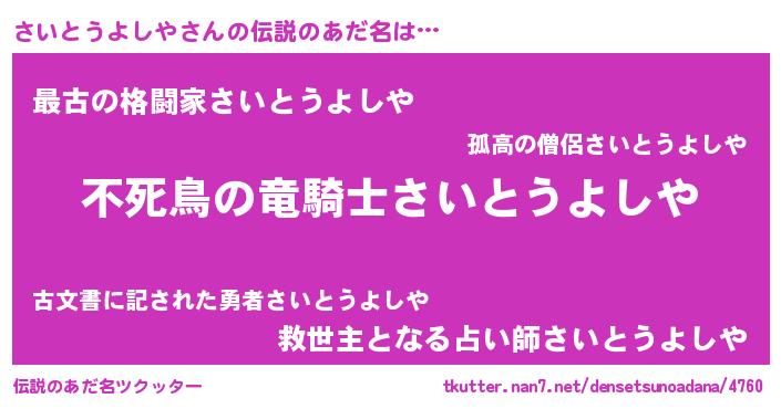 | ヒーロー風カッコイイあだ名 | 『スーパーサイトウヨシヤ』 |