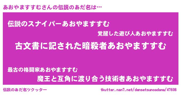 | 意味不明あだ名 | 『永久保存あおやますすむ』 |