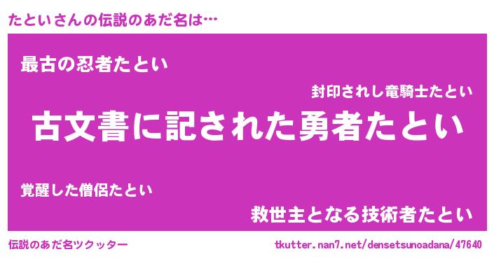 | ヒーロー風カッコイイあだ名 | 『仮面タトダー』『ネオタトイ』 |