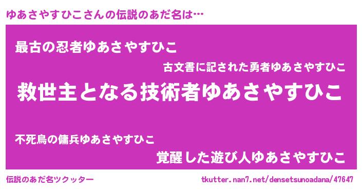 | ヒーロー風カッコイイあだ名 | 『慈愛の使者ゆあさやすひこ』 |