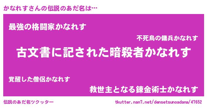 | 意味不明あだ名 | 『永久保存かなれす』『ニラ科かなれす属』 |