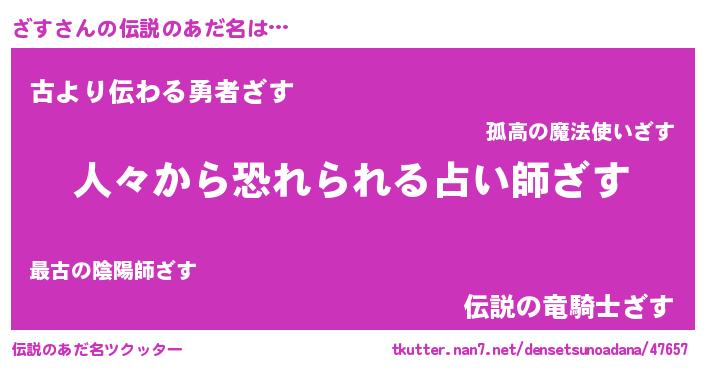| ファンタジー風あだ名 | 『クインザット』『ザスディッシュ』 |