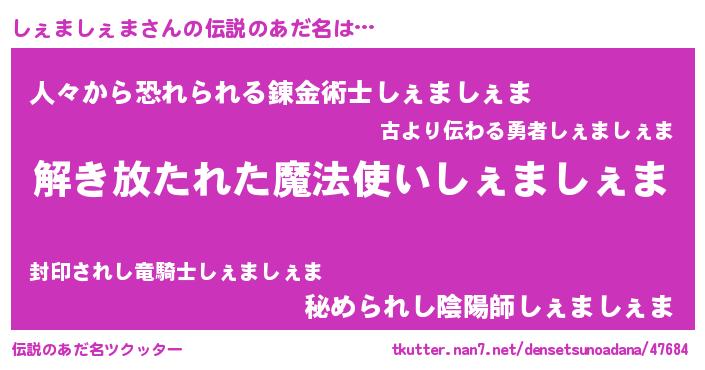 | 意味不明あだ名 | 『とにかく怪しいしぇましぇま』 |