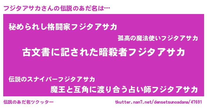| 胡散臭い通販商品みたいなあだ名 | 『前代未聞の健康食品…その名も「フジタアサカ」』 |