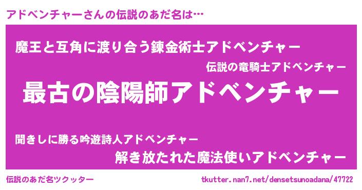 | 意味不明あだ名 | 『アドベンチャーフォーエバー』 |