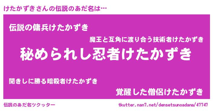 | ヒーロー風カッコイイあだ名 | 『ウルトラけたかずきマン』 |