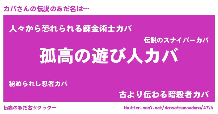 | ヒーロー風カッコイイあだ名 | 『暗黒騎士カバ』『友情の使者カバ』 |